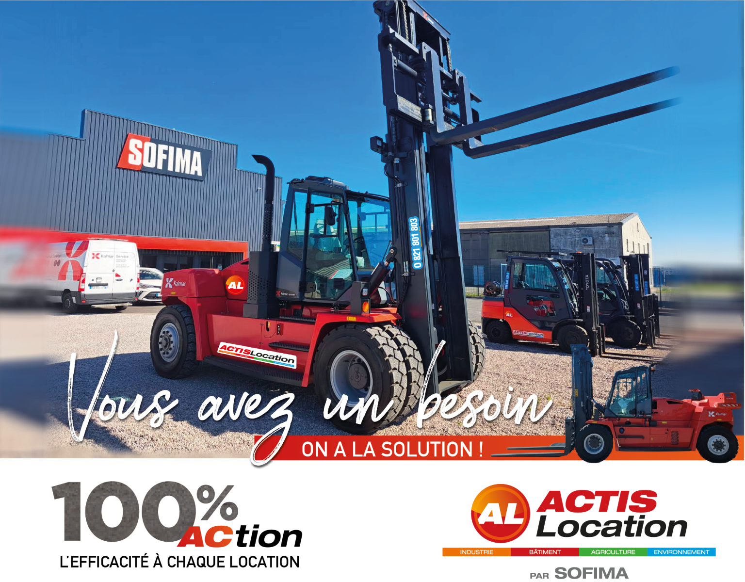 Location CHARIOT FRONTAL GROS TONNAGE KALMAR ACTIS LOCATION par SOFIMA, met à votre disposition des chariots frontaux gros tonnage Kalmar (16 tonnes), idéal pour toutes vos opérations
